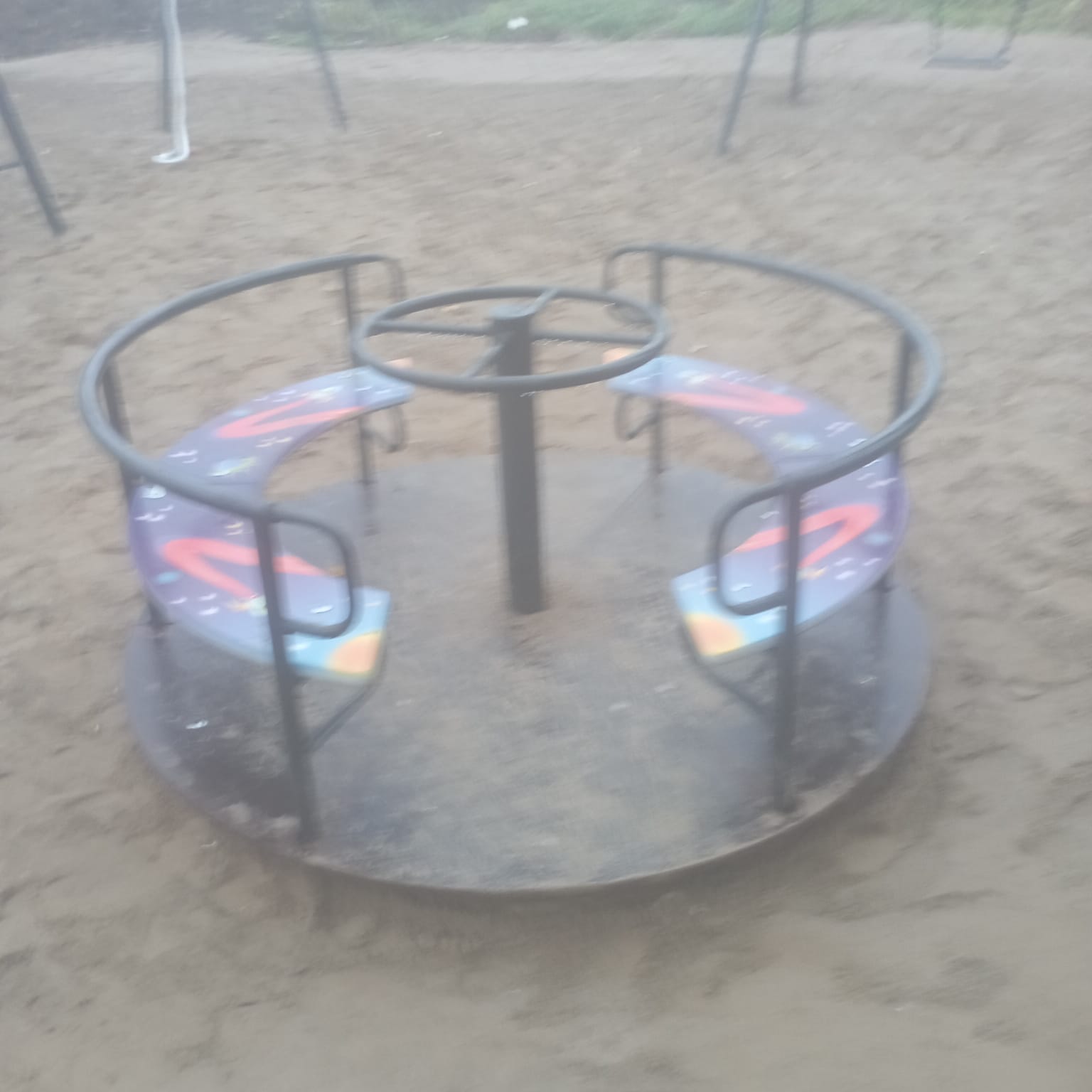 Эта карусель предназначена для детей от 3-х лет. Это металлическая конструкция с фанерным дном и деревянными сидениями. Сидения имеют металлические спинки и поручни. Пол покрыт влагостойкой фанерой толщиной 24 мм. Во избежание травматизма, фанера обладает анти скользящими свойствами. Металлический каркас конструкции установлен на валу с подшипниками и окрашен порошковыми красками. Карусель – это прекрасное устройство для активных детских групповых игр. Полностью безопасное и экологичное, соответствующее требованиям ГОСТ.